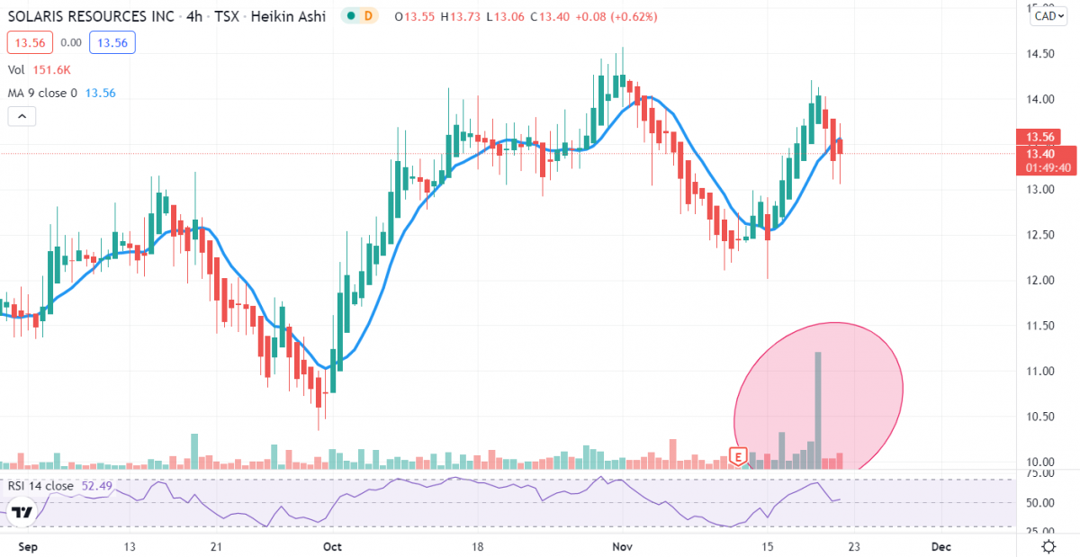 On November 18, 2021 Solaris Resources (TSX:SLS) traded above average volume by hundreds of thousands of shares at nearly 1.7 million in daily volume.... Read more »